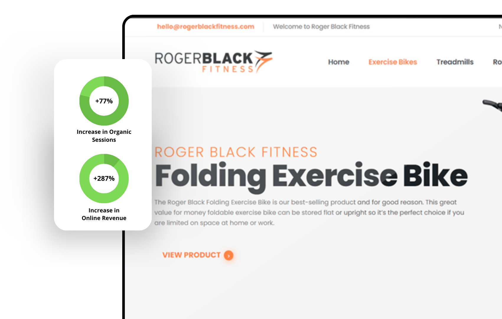 Roger Black Fitness approached us after their long standing sales contract with Argos UK ended. They didn’t want to stop supplying their popular home exercise machines to the UK population, so they decided to launch their own online shop, selling direct to the consumer.