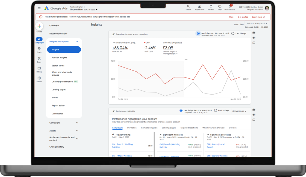 Reporting and insights give you a clear view of how your campaigns are performing. We track conversions, cost, and engagement across each channel, delivering useful takeaways backed by data.